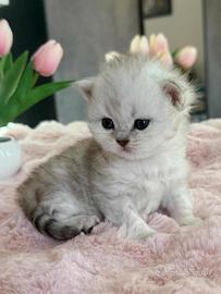 Disponibile alla prenotazione dolcissimo British (Long Hair), nella pregiatissima colorazione Silver Tabby. Un piccolo orsacchiotto! Nato da mamma British Long Hair e papà Highland fold. Genitori visibili di nostra proprietà! Il carattere di queste tipologie di razze è estremamente dolce! Nato il 22 Marzo. Sará pronto per metà Maggio, pronto per donare tanto tanto amore alla sua nuova famiglia! Adatto anche per bambini! I nostri cuccioli sono allevati con amore e passione, cresciuti in un ambiente familiare e curato. Sará ceduto ai 2 mesi completo di : Sverminazione, Primo Vaccino, Controllo di buona Salute, Completamente svezzato, Abituato all'uso del tiragraffi e della lettiera. I genitori sono testati e negativi a FIV e FELV. € 850 (No Pedigree) Per ulteriori foto, video del gattino contattare in privato, SOLO PERSONE SERIE/DECISE.