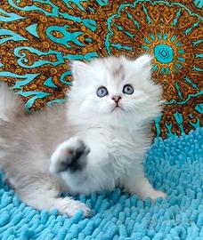Disponibile dolcissimo gattino British longhair colore silver chinchilla di 2 mesi, ha fatto il trattamento antiparassitario e il primo vaccino abituato alla lettiera e tiragraffi molto affettuoso e buono di carattere Sarà disponibile dal 25/04/26 Per il video e altre info su WhatsApp num 3471789427 possibile consegna in altri regioni Pedigree a richiesta
