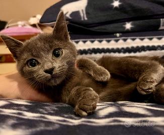 Vendo gattino di 80 giorni nato da madre persiano e papà certosino il gattino è maschio molto dolce e giocherellone abituato alla lettiera e al tira graffi!! Il gattino viene consegnato completamente svezzato con croccantini e con sverminazione completa esito feci eseguito e rilasciato in mano prima vaccinazione eseguita munito di libretto sanitario e con certificato di buone salute generale rilasciato dal veterinario. Per maggiori info foto contattatemi grazie mille