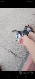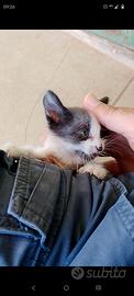 trovato abbandonato una settimana fa, ha cominciato immediatamente a mangiare per la grande fame nonostante fosse piccolissimo. a causa del fatto che era molto piccolo è stato un po' un problema svezzarlo ma adesso si è stabilizzato, mangia si diverte si riposa e gioca. ho altri gatti che hanno avuto la rino tracheite infettiva, quindi non posso tenerlo troppo con loro perché potrebbero infettarlo e potrebbe essere troppo piccolo per gestire questa malattia. quindi lo tengo in disparte chiuso in casa. se hai voglia di un gattino di cui prendersi cura, eccolo qui, l'unica cosa che c'è da fare è dargli lo stronghold (consigliato dal veterinario per risolvere un piccolo problema di ragnetta) soltanto due gocce sopra il collo, non di più, in quanto molto piccolo, (e teoricamente non si dovrebbe usare, però il vet ha detto che con due gocce si risolve) lo stronghold Costa intorno alle 38 euro e serve la ricetta del veterinario.