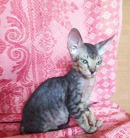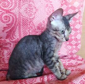 Disponibile a consegnarlo gratuitamente a ostia lido ( Roma) il 21 aprile, ma con possibilità di consegna in altre località ( isole incluse) con contributo, maschietto di don sphynx nato da cucciolata domestica privata ( no pedigree) il 18 gennaio 2026. Il piccolo è tipologia velour( presenta pertanto una sottile peluria ,anche se sta cominciando a diradarsi gradualmente e ulteriormente). È di colore tabby( tigrato), con struttura ed ossatura robuste. È sempre in cerca di coccole,molto attivo e giocherellone. Abituato alla convivenza con altri gatti, alla lettiera, ai rumori della vita familiare, al cibo secco,umido e alla carne ben cotta. Viene ceduto con libretto sanitario, sverminazione e due vaccinazioni. Per prenotare il piccolo ,per vederne i video o per ulteriori informazioni scrivere su whatsapp o telefonare al 3516861668 ( Katia).