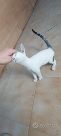 Questo bellissimo maschietto ha circa 4 mesi. Al momento è in stallo a San Cesareo (RM). È amorevolissimo e un gran coccolone, non sta fermo un attimo, infatti è difficile fotografarlo.