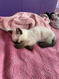 Cucciolo di gattino maschio siamese dolcissimo e giocherellone di due mesi cerca una famiglia affettuosa che gli dia tanto amore. È autonomo, utilizza la lettiera e mangia di tutto. Per altre informazioni non esitate a contattarmi!