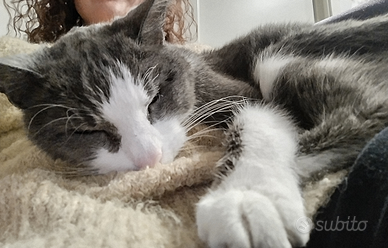 Cedo gatto di 13 anni. Super coccolone, molto docile e tranquillo. Non graffia le tende, non si fa le unghie sui divani (non usa molto il tiragraffi). Cedo con tutto: lettiera, cibo, giochini. Il gatto è sterilizzato e in salute.