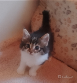 Splendido gattino a pelo lungo, tipo discendenza da nonni Norvegesi delle Foreste che hanno il pedigree e test filv e felv negativi (come riportato dal loro proprietario).
