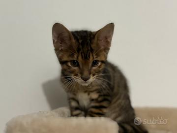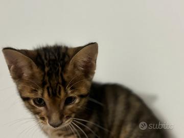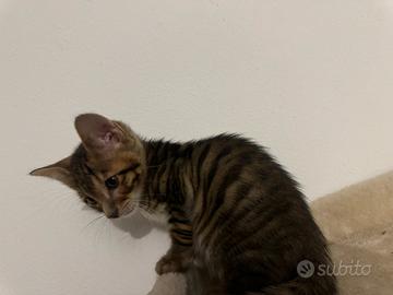 Allevamento amatoriale Dei giganti Toyger. Rarissima Gattina femmina Toyger di 2 mesi nata il 1 giugno 2025 . Verrà ceduta ( no regalo) a3,5 mesi ( non prima)con due vaccinazioni microchip sverminazione e sterilizzazione . Molto affettuosa abituata alla lettiera e al tiragraffi, dolcissima con i bambini.Genitori testati per malattie genetiche , fiv felv negativi., garanzia sanitaria . No perditempo no affaristi . Solo contatto telefonico 3490563616 o whatsapp