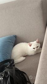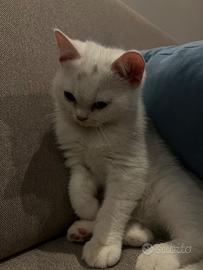 vendo gattino di 3 mesi british shorthair bianco con particolarità occhi impari. ha effettuato tutti i controlli veterinari necessari, ha completato tutti vaccini e anche la sverminazione.