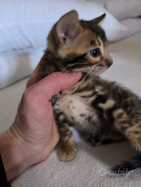 Disponibile bellissimo cucciolo maschio di Gatto del Bengala, genitori provenienti da allevamenti certificati. Verrà ceduto per la fine di aprile con vaccinazione e sverminazione effettuata dopo visita veterinaria.