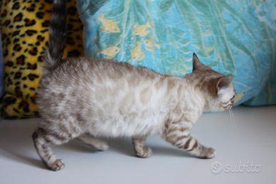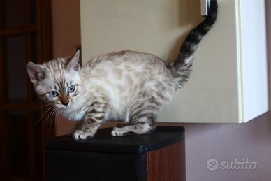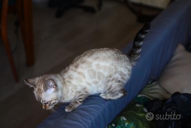 Bellissima cucciolotta di gatto del bengala ,pronta a entrare in una nuova famiglia. La piccolina è nata il 21 ottobre 2025, ha 2 vaccinazioni, sverminata, garanzia di buona salute e forniamo esito esami genetici dei genitori che attestano l'assenza di malattie genetiche più comuni di questa razza. La micetta sta crescendo in famiglia con noi ,quindi è ben socializzata. Pedigree ANFI da compagnia.