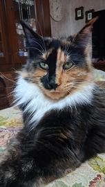 Privato vende meravigliosa e affettuosa gattina di 7 mesi di Maine coon nata il 01/07/2025. Vaccinata e sverminata. Genitori visibili in foto di mia proprietà no pedigree e non spedisco. Padre bianco nero e madre tricolore. Gradito contatto telefonico solo se realmente interessati.