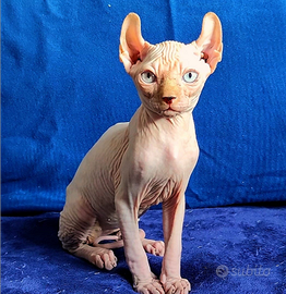 1 gattino maschio ELF color Cream ( non è White non porta in genetica la sordità) orecchie perfette manto completamente nudo nessun tipo di difetto nella coda occhi celesti.