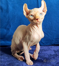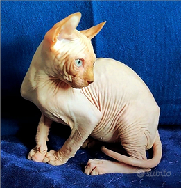 1 gattino maschio ELF color Cream ( non è White non porta in genetica la sordità) orecchie perfette manto completamente nudo nessun tipo di difetto nella coda occhi celesti.