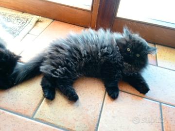 Vendesi gatto nero persiano maschio smoke normotipo bellissimo e di buon carattere di 3 mesi, sverminato e spulciato. Possibilità di vedere i genitori. Vendesi a 400 euro per ulteriori informazioni e foto contattare 366 1509185 Gigliola