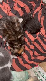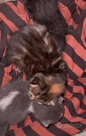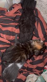 Incrocio di gatto padre siberiano madre gatto europeo Disponibile due maschietti uno nero e uno bianco e grigio Una femminuccia tricolore a pelo leggermente più lungo . Solo veri amanti degli animali .saranno disponibile per fine maggio .