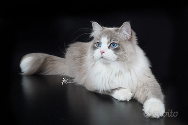 Raul Nevalions è un gatto Siberiano Neva Masquerade, disponibile per l'accoppiamento, in possesso di doppio Pedigree (WCF e FIFE), con garanzia di purezza e qualità della razza. Colore Blue tabby point bicolor (as 03 21 33), peso 7 kg. Ha ottenuto ottimi giudizi in Expo e ha attualmente il titolo di Campione nazionale CH in Expo.