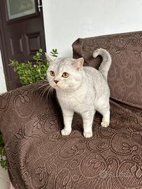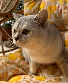 Offro servizio di monta con Marelyn, magnifico esemplare di Scottish Straight Shorthair dal manto Silver Chinchilla e occhi color miele. Un gatto dall'aspetto regale e dal carattere eccezionalmente dolce, affettuoso e socievole.