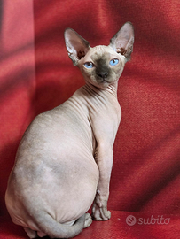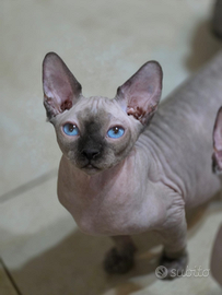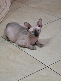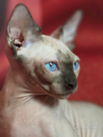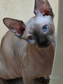 Disponibile spettacolare gattino sphinx con occhi blue dominante color cioccolato. In salute con ciclo vaccinale fatto, microchip e documenti necessarie fatti. Da pet sterilizzato o intero con pedigree. Carattere molto dolce ed affettuoso. Abituato stare con umani, gatti e cagnolini.