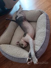 Disponibile bellissimo maschietto sphynx elf per l'accoppiamento. Colore grigio, bianco e rosa. Manto pesca. test hcm negativo. Per info contattatemi su WhatsApp al 3423558307
