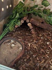 per qualunque cosa contatate e vi saranno fornite informazioni e foto. in vendita 2 esemplari di gechi leopardini un maschio ed una femmina insieme ad una grande teca che permette di creare una zona fredda ed una calda grazie al tappeto riscaldato ed un filo fatto a posta insieme tutto compreso un sacco del nuovo terriccio ed altre cose utili alla manutenzione come fili, termometri ed altro. i gechi leopardini sono i rettili piu facilmente gestibili per coloro che non ne hanno mai avuti prima. comprese anche le tane e le decorazioni interne della teca. dietro è organizzato in maniera perfetta i fili sono attaccati sul retro cosi da non dare fastidio è presente una finestrella e un buco che fa passare il filo del termometro e tenere sempre sott'occhio la temperatura. in dotazione anche un piccolo lucchettino per bloccare i pannelli di vetro. prezzo trattabile