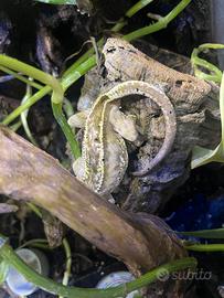 GECO CILIATUS FEMMINA del 2022 mai accoppiata, che mangia insetti e pappe per Ciliatus. dentro a teca per rettili arboricoli EXO TERRA L30xP30xH47 con fondo drenante e sfondo fatto a mano con pianta Photus al suo interno.