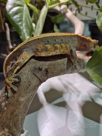 Vendo maschio subadulto, 31 g, sano e già sessato. Colorazione harlequin/halloween, full pinstripe e dalmatian, esemplare molto completo e con ottima struttura.