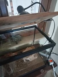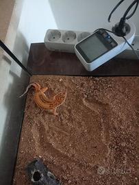 Vendo geco leopardiano 9 mesi più terrario artigianale ricavato da acquario lampada riscaldante più termostato con rane ecc off
