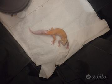 Buona sera vendo a malincuore una stupenda cucciola di geco leopardino acquista in allevamento come si può notare in foto . L'animale e sanissimo . Insieme al geco do anche il termostato completo e il cavetto riscaldante