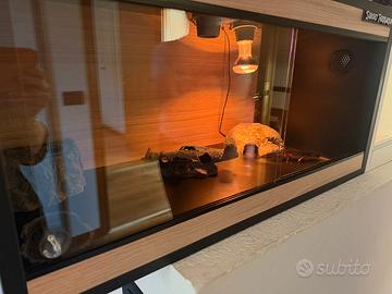Cedo esemplare di geco leopardino femmina BLACK NIGHT di tre anni con la sua teca completa di: ciotola di calcio, ciotola di acqua, tana 'umida', tana 'calda', aeroplano come nascondiglio, lampada riscaldante regolabile. Possibilità di aggiungere il tappetino riscaldante. Geco perfettamente in forma, sempre mangiante, ha vissuto sempre da sola quindi non ha segni di lotta e non ha alcun tipo di patologia. In regalo box contenente circa 300 tarme della farina