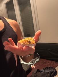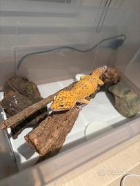 Vendo Geco Leopardino femmina in perfetta salute, poco più di un anno di vita, compreso di box, 2 tane, tronchetto in sughero, tappetino riscaldante, barattolo quasi pieno di Calcio senza D3 e barattolo quasi pieno di Multivitaminico con D3