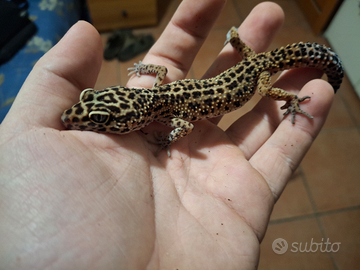 Vendo geco leopardino sub adulto maschio, per motivi di trasferimento scolastico. Ha già fatto la muta, mangia vario senza problemi, in piena salute. Vendo con altre 2 sorelle entrambe femmine. Sconto se presi insieme, info in privato.