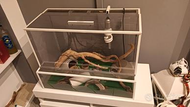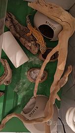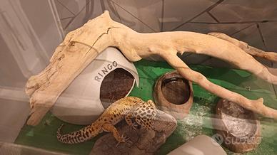 Geco Leopardino maschio di 2 anni con Teca allestita con lampada, tappeto riscaldante,2 tane,tronchi decorativi(regalo fibra di cocco 3 calcio)