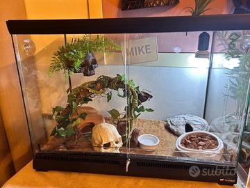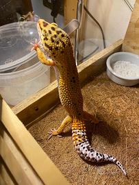 Vendo per un'amica geco leopardino di sua proprietà con teca arredata. Geco maschio di 1 anno e mezzo morph: blood gg het tremper ph eclipse. Ritiro zona Cologna Veneta (VR). La teca è compresa di arredi (esclusi i 2 teschi). Per altre info chiedere in privato.