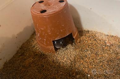 Abituato a mangiare piccoli grilli. Cresce alle stesse condizioni di temperatura, luce e umidità dei grandi.