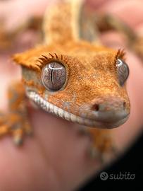 Vendo splendido esemplare maschio di Correlophus Ciliatus (Geco Crestato). Il geco è in perfetta salute, attivo e ottimo mangiatore (accetta sia insetti vivi che pappa completa tipo exotic sustain/Biogecko food). Caratteristiche principali: o Morph: Tricolor Full Pinstripe (linee bianche dorsali complete e fianchi con ottimo contrasto). o Sesso: Maschio (pori ben visibili). o Peso: 13 grammi. o Stato: Coda integra, nessuna malformazione, muta regolarmente. È un esemplare con un ottimo potenziale genetico, ideale sia per chi vuole iniziare con un geco dai colori ricercati, sia per futuri progetti di riproduzione visto il tratto "Full Pin". Note: o Disponibili altre foto o video su richiesta (anche in fired up). o No spedizione: ritiro a mano o fiere del settore /trasporto per garantire il benessere dell'animale. o Massima serietà