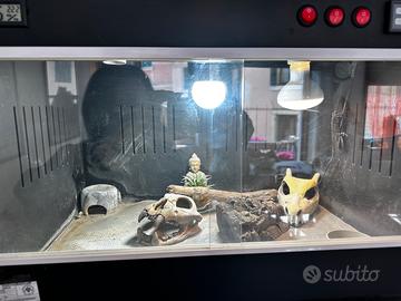 Salve a malincuore cedo il mio geco di 4 anni, completo di teca intelligente con luci, termometro con sonda e monitor con umidità e gradi. Inoltre compreso nel prezzo ci saranno i pezzi dell'arredo