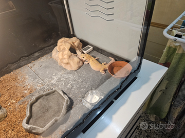 Vendo femmina di Geko Leopardino High Yellow Hypo di circa 1 anno e mezzo in perfetta salute, compreso il suo terrario da 60 cm e tutti gli oggetti che vedete, vendo solo in blocco