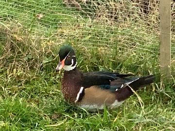 Vendo giovane maschio di anatra sposa/ Carolina nato questo estate da cova naturale e genitori non consanguinei. Sta finendo ora la il cambio del piumaggio di adulto. Allevato a terra e al aperto. Vendo a €25.
