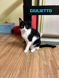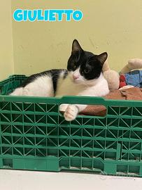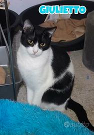 Ciao a tutti a-mici io mi chiamo Giulietto, ho tre anni e sono un bel micio bianco nero.
