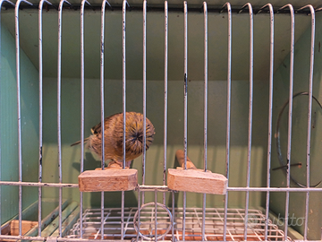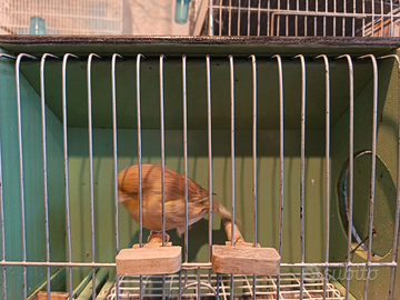 Canarini Gloster mutati Agata e Cinamon, portatore di Isabella, verdi e ardesia, Novelli 2025 anello Foi FU91