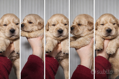 Attenzione: i cuccioli di golden nascono sempre più chiari e definiscono il pelo verso l'anno di età. Considerando i genitori e i nonni i cuccioli avranno tutti colorazione che va dall'oro al rossiccio tipico dei golden americani.