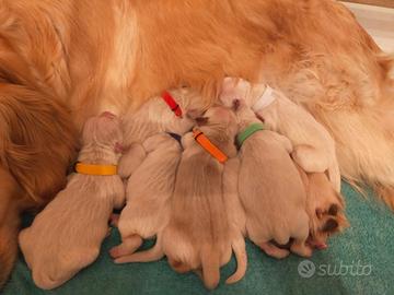 È arrivata una splendida cucciolata Siamo felici di annunciare che la nostra Caspita, è diventata mamma! I cuccioli sono nati nella notte tra il 13 e il 14 di Aprile e saranno pronti per portare allegria in nuove famiglie responsabili. I Genitori - Madre: Caspita, Golden Retriever, di carattere dolce, equilibrata e molto socievole. - Padre: Teodoro, Golden Retriever, esemplare sano e vivace. Informazioni sulla consegna : - I piccoli cresceranno in ambiente familiare e verranno ceduti solo dopo il periodo di svezzamento (minimo 60 giorni), completi di: - Primo ciclo di sverminazioni. - Certificato di buona salute. - [Opzionale: Microchip e primo vaccino]. Cerchiamo per loro solo persone amanti degli animali che possano garantire spazio, tempo e tanto amore. Per informazioni lasciare un recapito tramite Subito.