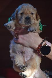Veterinaria ed Allevatrice con affisso ENCI "BLONDE IN GOLD" (ci trovate su FB e sito internet) propone ultimi 2 cuccioli disponibili. di prestigiosa cucciolata nata il 15 dicembre. Esperienza ultra-ventennale. Cuccioli ceduti verso metà febbraio dopo il compimento dei 60 giorni, con pedigree ENCI, microchip, certificazioni esenzione malattie ereditarie di 4 generazioni, libretto sanitario con vaccinazioni e sverminazioni, certificato buona salute, puppy kit, contratto con garanzia ed assistenza professionale a vita (esperienza ultra ventennale). Papà Maverick (Royal Crest Gold-n Dunhill) è Campione Italiano ed Internazionale di Bellezza, figlio di Royal Crest Gold-n Mozart in the Jungle, Campione Internazionale di Bellezza. Mamma Audrey (Blonde in Gold War is Over) è figlia del Multi Ch. Rizonhills My Horizon Sky (Campione Internazionale, italiano, croato, sloveno di Bellezza, Italian Junior Champion, CRUFTS 2019 - 2020 for life QUALIFIED, # 2 TOP DOG ENCI RANKING (JUNIORS) ALL BREEDS 2017, Campione Riproduttore, European Veteran Winner e Veteran Best of Breed). Da parte materna è nipote di Giuba delle Antiche Valli, cane da soccorso (brevetto operativo salvataggio in acqua, Pet Therapy), a sua volta figlio di Inkey, cane da valanga del Soccorso Alpino Valdostano e di Royal Crest Gold-n Oh My Lord, Campione Italiano di Bellezza 2012 e Campione Italiano Veterano 2017. Maverick e Audrey hanno entrambi un carattere meraviglioso, energico e coccolone, incarnando la migliore selezione dual purpose del Golden Retriever, orientata sia alla bellezza che all'attitudine da lavoro.