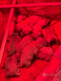 Disponibili alla prenotazione 7 bellissimi cuccioli (5femmine, 2 maschi) di Golden Retriever linea inglese/americana nati il 16/04/2026. I cuccioli saranno ceduti dal novantesimo giorno di età in poi (16/07/2026) Verranno ceduti con : * Visite veterinarie * Microchip * Registrazione all' anagrafe canina * Ciclo sverminazioni completo * Vaccino * Libretto sanitario * Pedigree I genitori sono visibili ed esenti da displasia. Per info non esitate a contattarci! ?