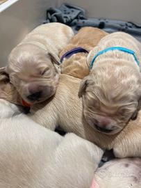 Cuccioli di Golden retriever inglese, nati il 23/03/2026 in ottime condizioni da genitori sani e curati come figli, madre linea inglese chiara e padre linea inglese miele, disponibili da fine maggio/inizio giugno in base al loro autonomo svezzamento, cuccioli saranno dati sverminati e visitati dal veterinario, saranno già abituati alla compagnia di bambini e anziani, madre e padre buoni e dolci, 5 maschi e 4 femmine, astenersi perditempo e chi non può garantire un felicissimo futuro a queste meravigliose creature che chiedono amore e affetto incondizionato, al momento della scelta sarà richiesto un piccolo contributo che assicura l'impegno, alla consegna del cucciolo verrà dato un kit puppy con delle crocchette e una ciotola e collarino da passeggio leggero