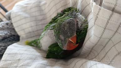 Allevamento amatoriale il "Becco" cede pulli da imbecco di grande alessandrino , i soggetti vengono imbeccati dai primi giorni di vita e potranno essere ceduti a circa 25/30gg, a metà svezzamento o completamente svezzati, nascono tutti nel mio allevamento e vengono anellati foi, possibilità di visionare i genitori, Possibilità di fornire tutto il necessario per lo svezzamento, trasportini, pettorine e gabbia. Prezzo 300 euro a soggetto può variare in base la fase di svezzamento. Posso consegnare in tutta Italia isole comprese. Per ulteriori informazioni in privato o al seguente numero telefonico 3661456491.