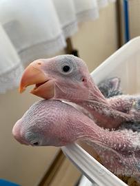 Cedo 2 grandi alessandrini da allevare a mano prendono 4 poppate al di...documenti in regola