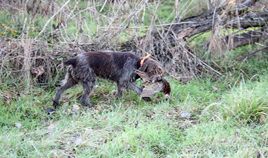 Griffon Korthals femmina di 6 anni Superba cacciatrice su tutti i selvatici, specialmente nei terreni con macchie e fitto. Ferma con grande esperienza tutti i selvatici Specialista per la caccia in valle dove recupera e riporta