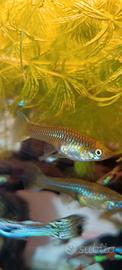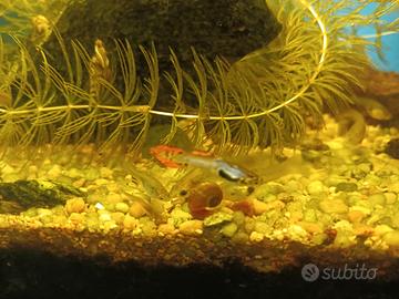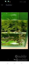 Vendo Guppy di endler snakeskin classici a 2€ l' uno e Orange a 3 € l' uno belli e sani , allevati nei miei acquari e abituati ai valori dell' acqua di rete Da acquistare in gruppi di circa 10 esemplari Sono piccoli pesci che prediligono acquari loro dedicati con n molta vegetazione