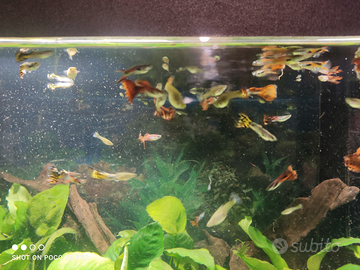 vendo guppy e endler nati e cresciuti nel mio acquario, sani e vispi abituati ad acqua di rubinetto...vari colori guppy 1,5 euro. endler 2 euro minimo gruppi da 6 individui
