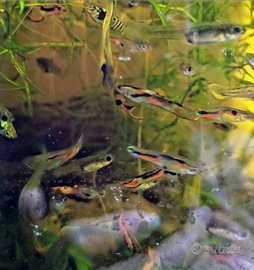 Vendo endler-guppy ibridi: 3 per 2 euro. Fatico a scegliere il sesso e il colore, non sono abile a catturarli .